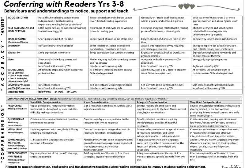 Conferring with students is a unique and significant opportunity to learn about what a student is doing as a reader/writer as we engage with them side by side during the Reading Conference. This resource, Conferring with Readers: Assessment Rubric, allows you to have a comprehensive eye on the child as...