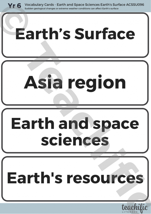 ACSSU096: Sudden geological changes and extreme weather events can affect Earth’s surface.