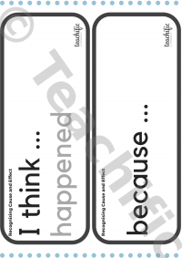 Recognising Cause and Effect prompts guide students to determine the cause of particular character actions and story events.