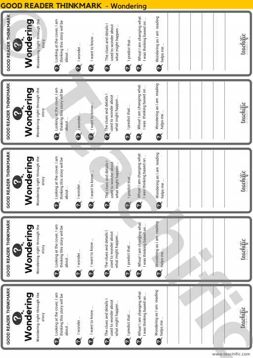 Our Thinkmark will anchor the good thinking that you have demonstrated, and prompt students to practise the strategies of good readers. Have students keep their Thinkmark with them as they are reading to practise wondering, exploring and digging deeper into the story.