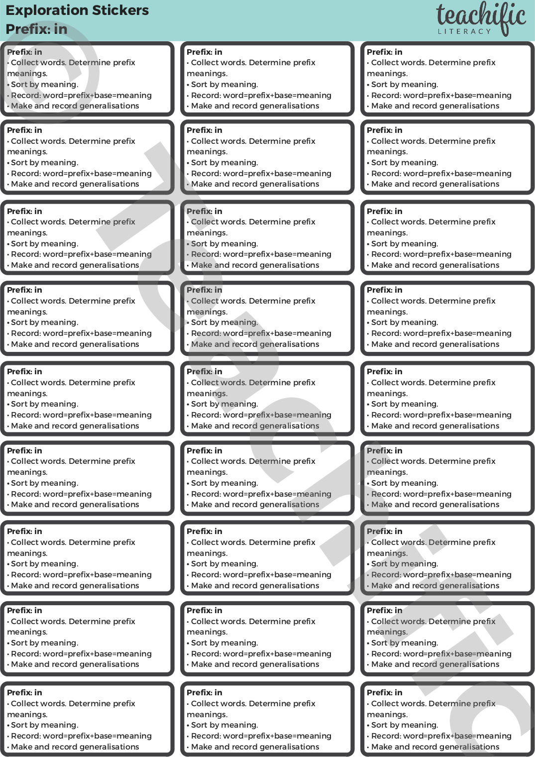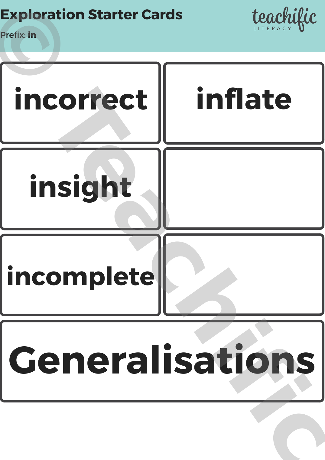 - Prefix header cards (including Wondering Words, for the words that raise questions and wonderings!)