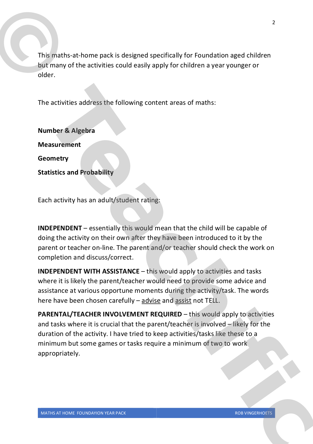 Maths-at-Home Foundation (20 activities, 63 pages)- $50
