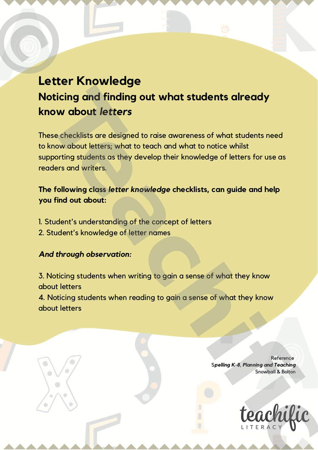 Includes four ready to use LETTER KNOWLEDGE Checklists!