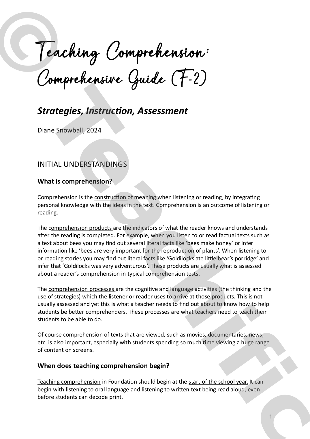 With structured teaching, ongoing assessment, and the Gradual Release of Responsibility model, Snowball's guide helps teachers create a strategic, responsive, and meaningful approach to comprehension instruction. Perfect for F-2 classrooms, it's a must-have resource for fostering independent, confident readers.