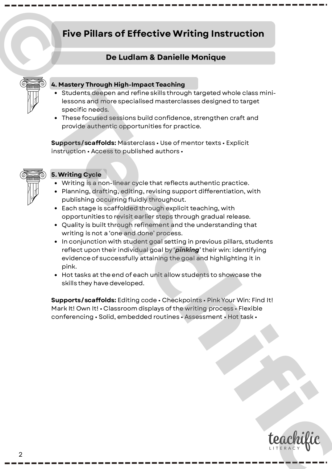 From purposeful planning and quality writing through to student independence, masterclasses, and the writing cycle, the five pillars work together as an integrated whole. No pillar stands alone. Each one strengthens the others.