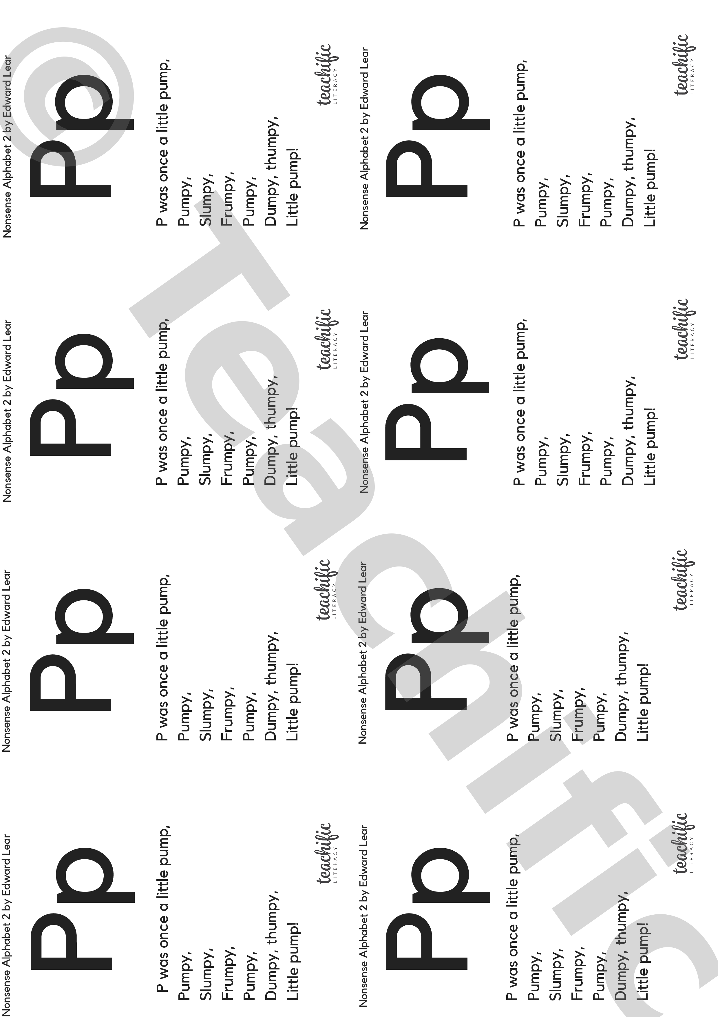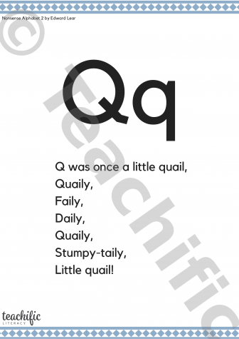 In this Nonsense Alphabet Lear creates an alphabet of nonsense rhyming words. Each verse gives children an engaging opportunity to listen to and explore the same sound in words.