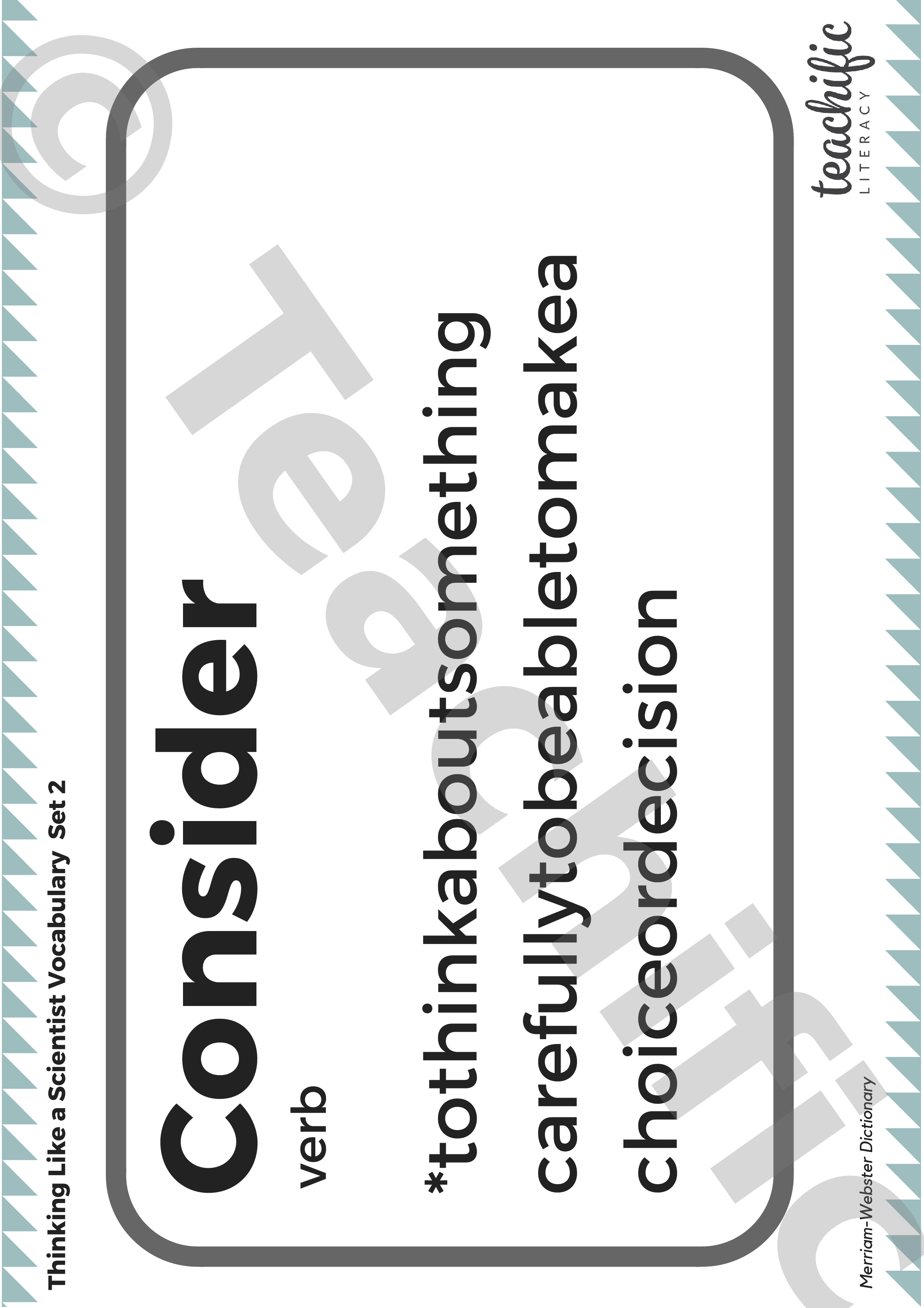 Vocabulary Chart: Thinking Like a Scientist Set 2 - Consider