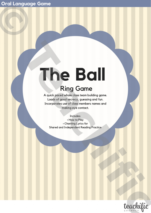 Oral Language Games include: How to Play instructions, a copy of the Rhyme (A4, enlarge to A3), game tools